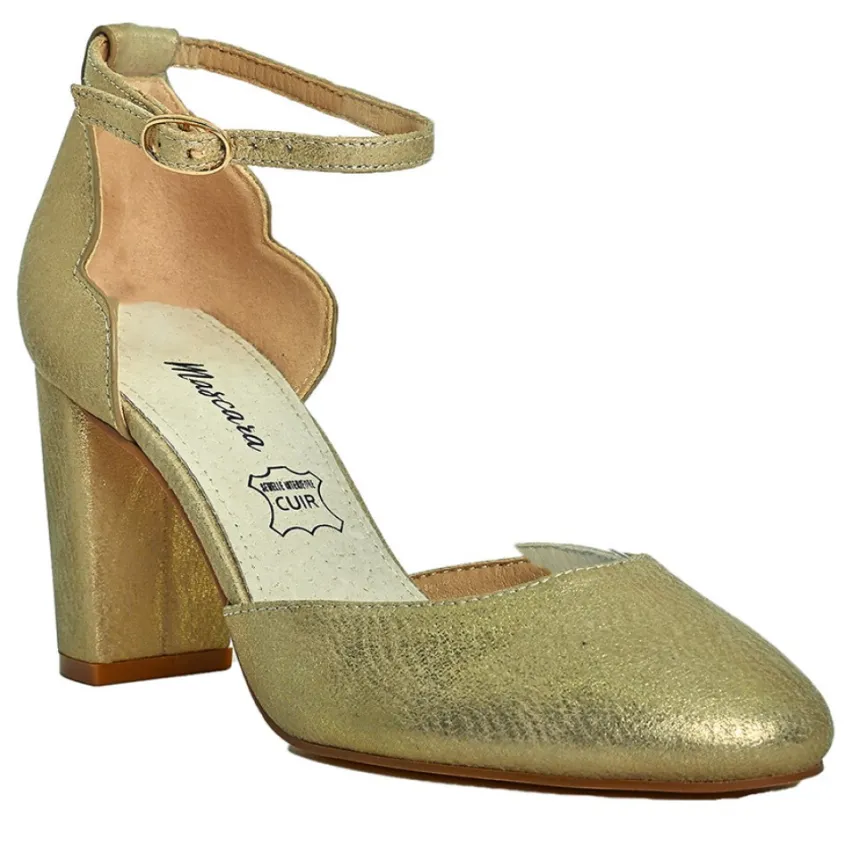 Escarpins À Brides Femme Doré Mascara: Succombez Au Charme De Ces Escarpins Pour Femme Dorés ! Ultra Tendance, Leur Coloris Lumineux Vous Fera Rayonner Au Quotidien. Confortables Et Légers, Ces Escarpins Au Talon De 8,5 Cm Sont Les Chaussures De Cérémonie Parfaites.Ils Allongent Votre Silhouette Tout En Vous Offrant Un Confort Incomparable Grâce À Leur Semelle Intérieure En Cuir. Pour Un Meilleur Maintien, Ces Escarpins De La Marque Mascara Sont Munis D’Une Bride Qui Soulignera Discrètement Votre Cheville. Leur Bout Rond Complète Leur Coupe Très Féminine, Accentuée Par Un Bord Croqué À L’Arrière.Caractéristiques : Dessus En Synthétique, Doublure Synthétique, Semelle Élastomère, Talon 8.5 Cm.
