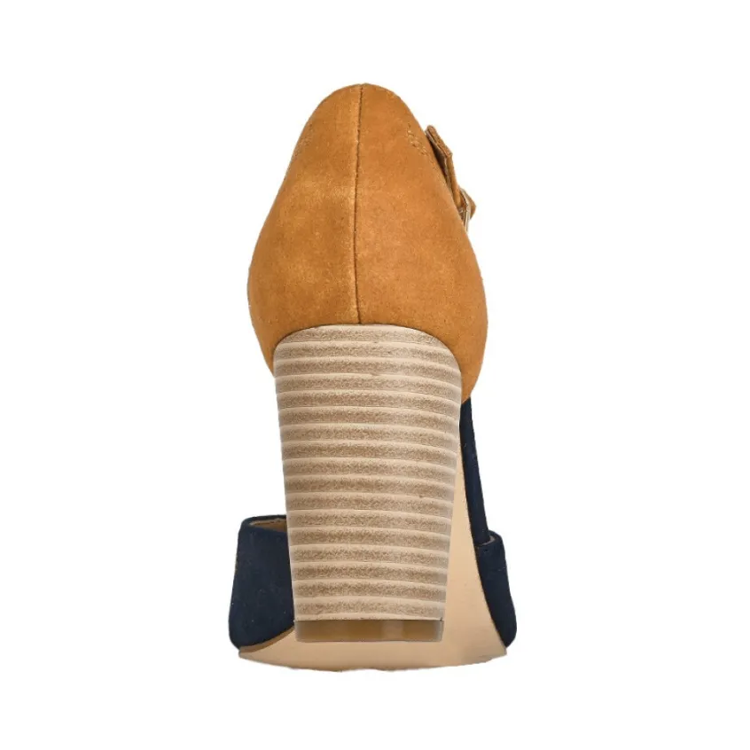 Escarpins À Brides Femme Bicolore Bleu Marine Vice Versa: Pour Apporter Une Touche De Couleur À Votre Tenue Tout En Restant Élégante, Ces Escarpins Salomés Bleu Marine Et Camel Sont Un Choix Idéal. Notre Coup De Cœur : De Délicates Surpiqûres Camel Et De Petites Perforations Ornent La Tige De Ces Chaussures À Talon Vice Versa. Confectionnés Dans Un Tissu Suédine Doux Et Chaleureux, Ces Escarpins Bicolores Vous Garantissent Une Allure Éblouissante. Bout En Amande, Talon De 8 Cm Et Fine Bride À La Cheville : Le Combo Parfait Pour Être Féminine En Toutes Circonstances. Dernier Atout Non-Négligeable De Cet Escarpin Pour Femme : Sa Semelle Intérieure En Cuir Confortable Et Respirante.Caractéristiques : Dessus En Synthétique, Doublure Synthétique, Semelle Intérieure Cuir, Semelle Élastomère, Talon 8 Cm.