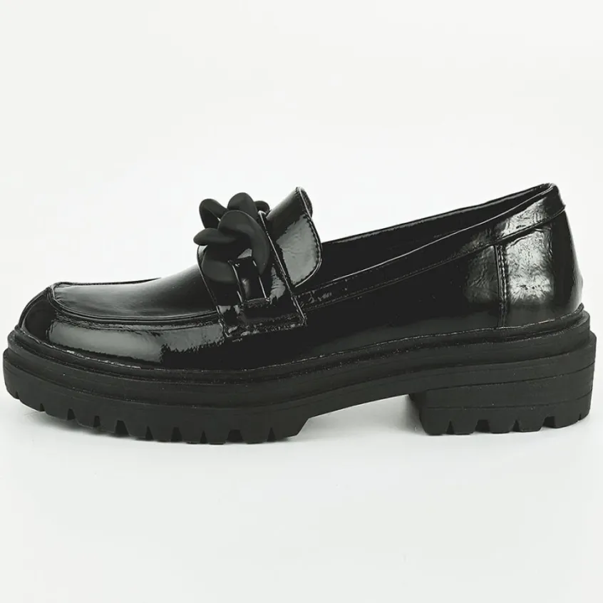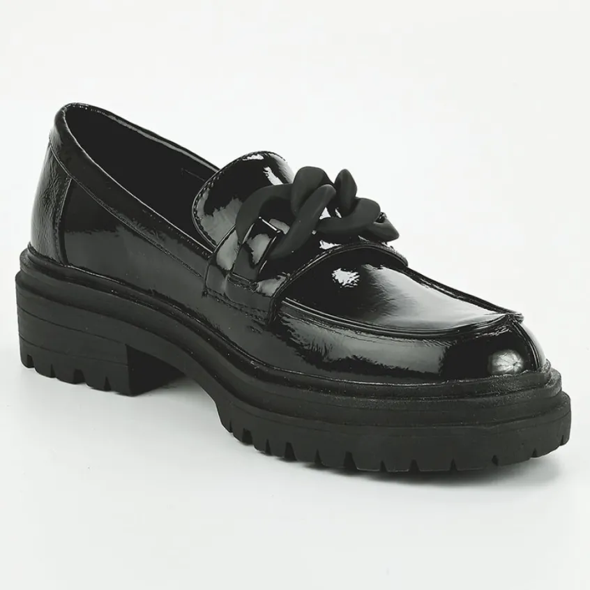 Mocassins|VICE VERSA Mocassins Crantes Vernis Noir Femme A Chaine