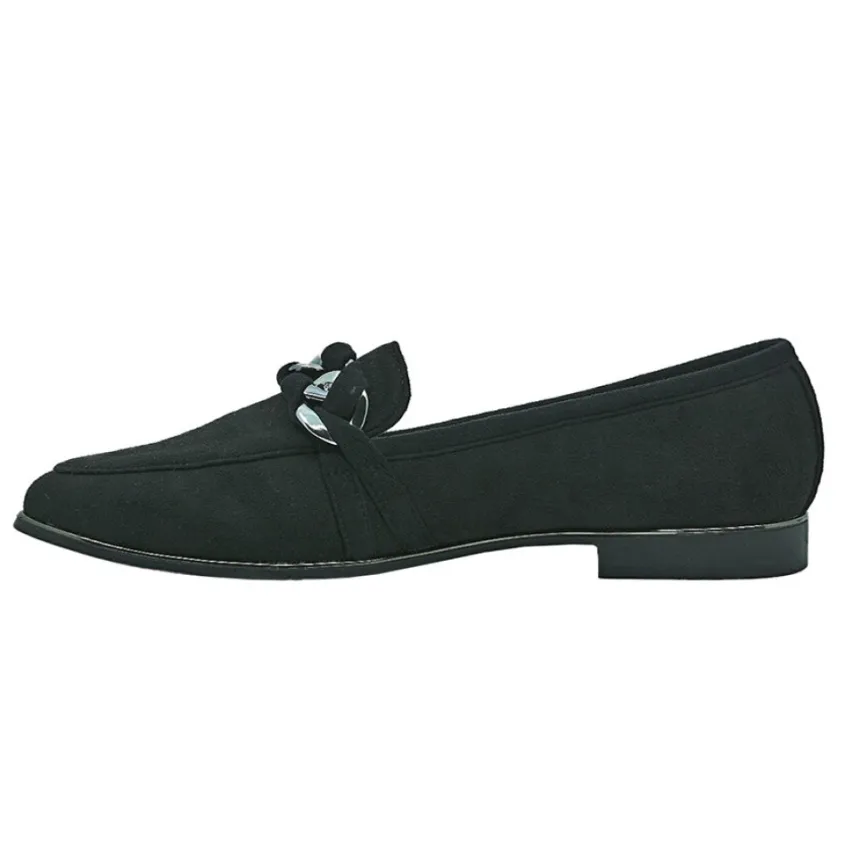 Mocassins Femme Noir À Chaîne Argentée Vice Versa: Vous Cherchez Des Chaussures Aussi Élégantes Que Confortables ? Pas De Doute, Ces Mocassins Noirs De La Marque Vice Versa Sont La Pièce À Posséder Cette Saison !Ce Qui Les Distingue ? Une Chaîne Argentée Entrelacée De Rubans Noirs, Qui Leur Donne Un Style Chic Et Original. Ces Slippers Pour Femme Tendance Sont Confectionnés En Suédine, Une Matière Souple Et Douce, Agréable À Porter.Cette Chaussure Plate Vous Assurera En Prime Un Confort Optimal, Notamment Grâce À Une Semelle Intérieure En Cuir Qui Offre Une Bonne Respirabilité. Que Vous Les Portiez Avec Un Tailleur Pour Un Look Classique Ou Avec Un Jean Slim Pour Un Look Rock, Ces Mocassins Classiques Pour Femme S’Adapteront À Toutes Vos Tenues Et À Toutes Les Occasions.Caractéristiques : Dessus En Synthétique, Doublure Synthétique, Semelle Intérieure Cuir, Semelle Élastomère.
