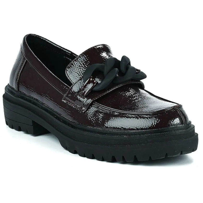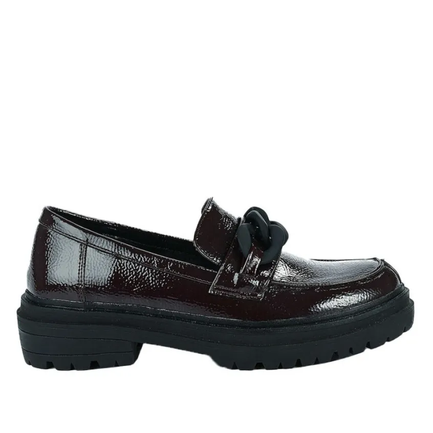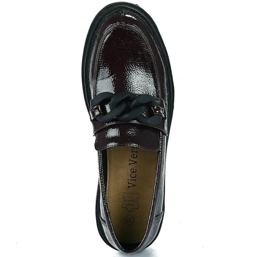 Mocassins Femme Vernis Bordeaux À Chaîne Vice Versa: Les Mocassins Femme Sont Décidément La Tendance À Ne Pas Louper Cette Saison. Pour Accentuer Votre Allure Automnale, Rien De Tel Qu’Une Audacieuse Paire De Mocassins Vernis Bordeaux De La Marque Vice Versa.Le Détail Mode Qu’On Adore : Une Chaîne Noire Mate Qui Contraste Avec L’Aspect Brillant De La Tige Vernie. Son Design Ultra Élégant Est Modernisé Par Une Iconique Semelle Crantée Tout Le Monde S’Arrache En Ce Moment ! Avec Une Jupe, Un Pantalon Ou Même Un Jean, Vous Trouverez Toujours Un Moyen De Porter Ces Chaussures Femme Confortables Et Élégantes.Caractéristiques : Dessus En Synthétique, Doublure Textile, Semelle Intérieure En Cuir, Semelle En Élastomère, Talon De 3 Cm