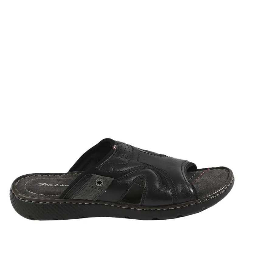 Mules Homme Sealine Noir: Mules Homme, Marque Sealine, Coloris Noir, Dessus En Cuir, Doublure Textile, Semelle Intérieure Cuir, Semelle Élastomère.
