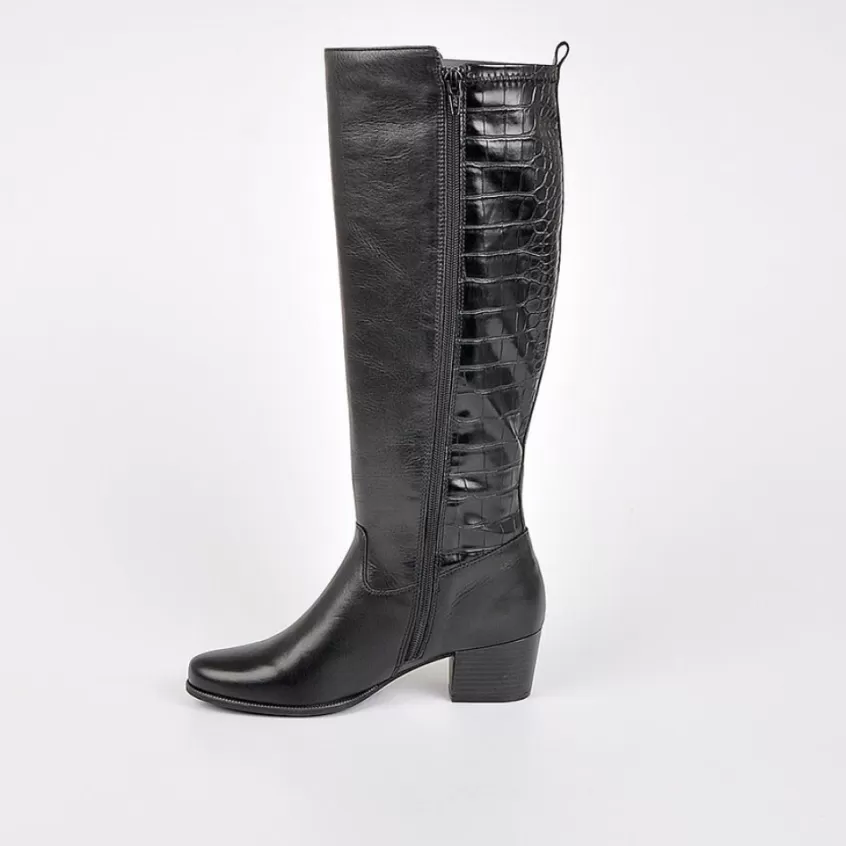 Bottes À Talons Tipo Alto Noir: Bottes À Talons Femme, Marque Tipo Alto, Coloris Noir, Dessus En Cuir, Doublure Textile, Semelle Intérieure Cuir, Fermeture Avec Zip, Semelle Élastomère.