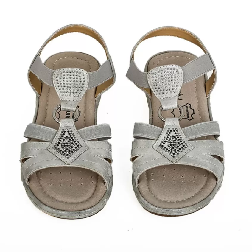 Sandales Plates Femme Lady Confort Argenté: Grand Confort, Forme Largesandales Plates Femme Confort, Avec Strass, Marqu…