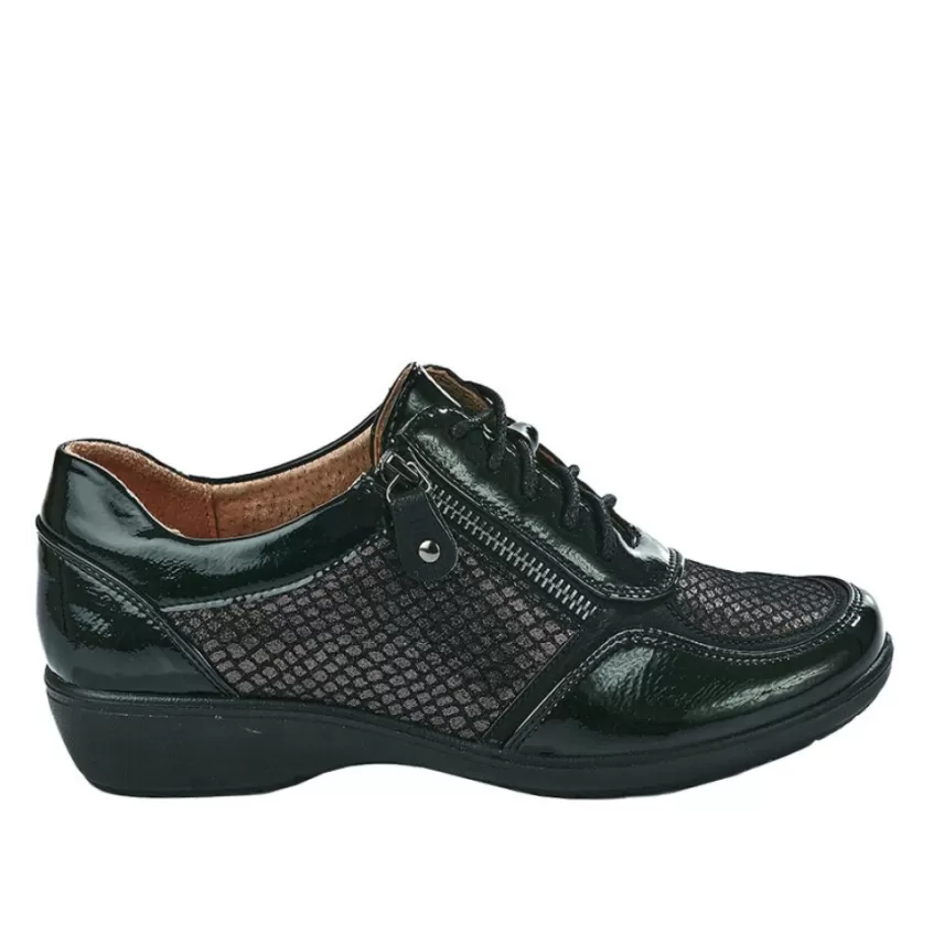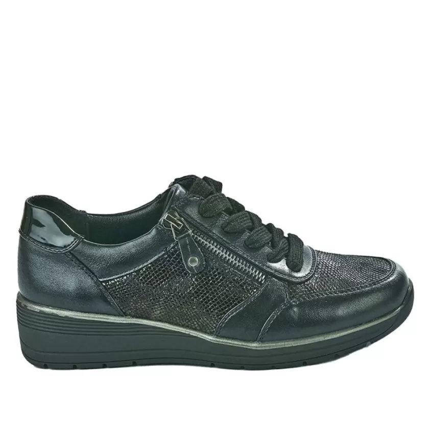 Chaussures Confort | LADY CONFORT Baskets Confort Femme Noir Avec Fermeture Eclair