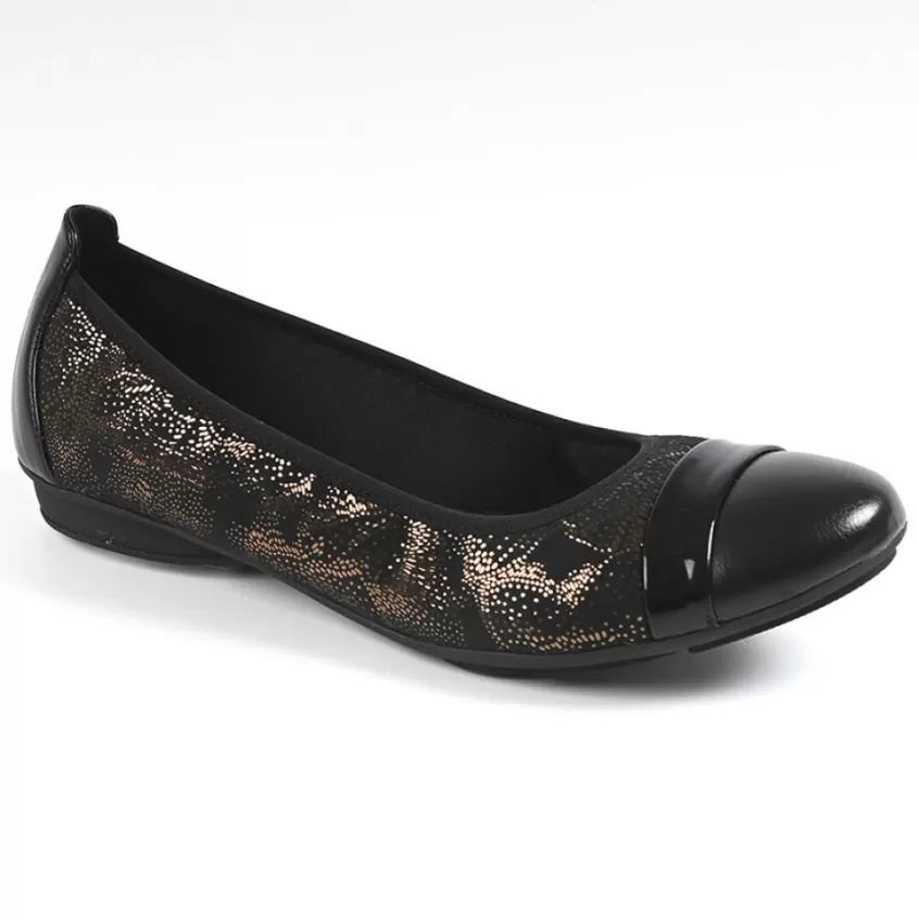 Chaussures Confort | SCALINA Ballerines Femme Bi-Matieres Noir Et Dore