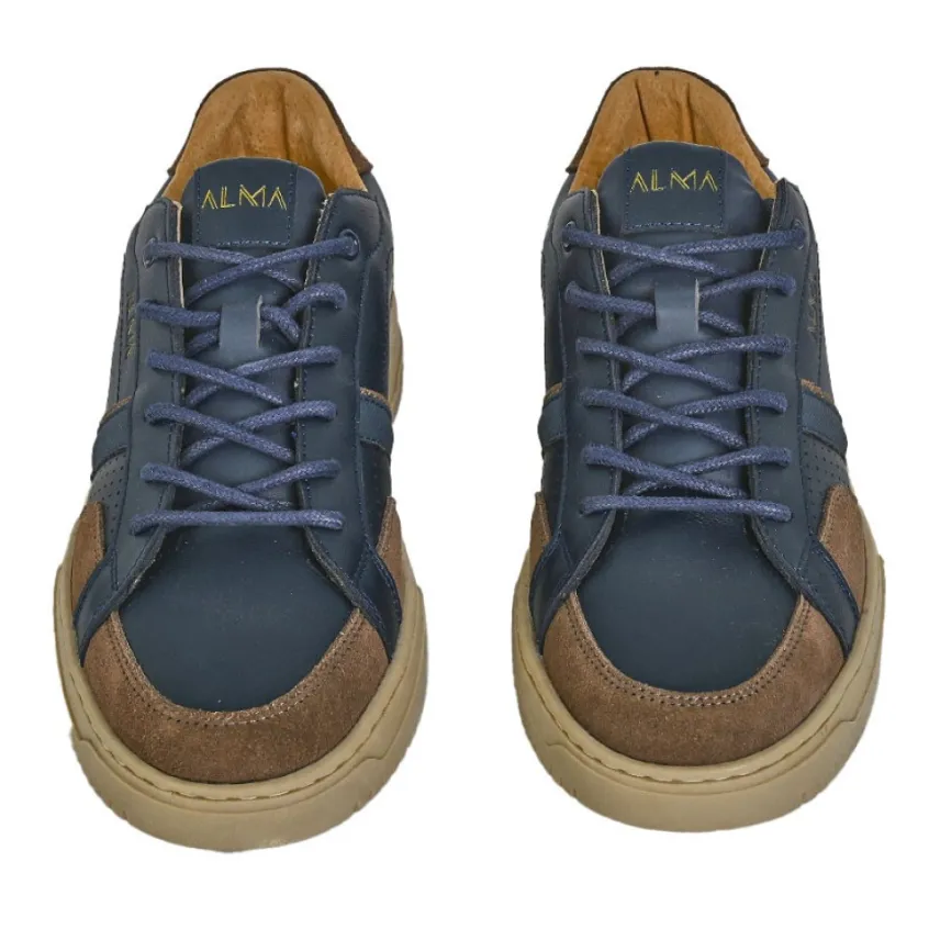 Baskets Homme En Cuir Bleu Marine Alma: Baskets Homme, Marque Alma, Coloris Bleu Marine, Dessus En Cuir, Doublure Cuir Et Textile, Semelle Intérieure Cuir, Semelle Élastomère.