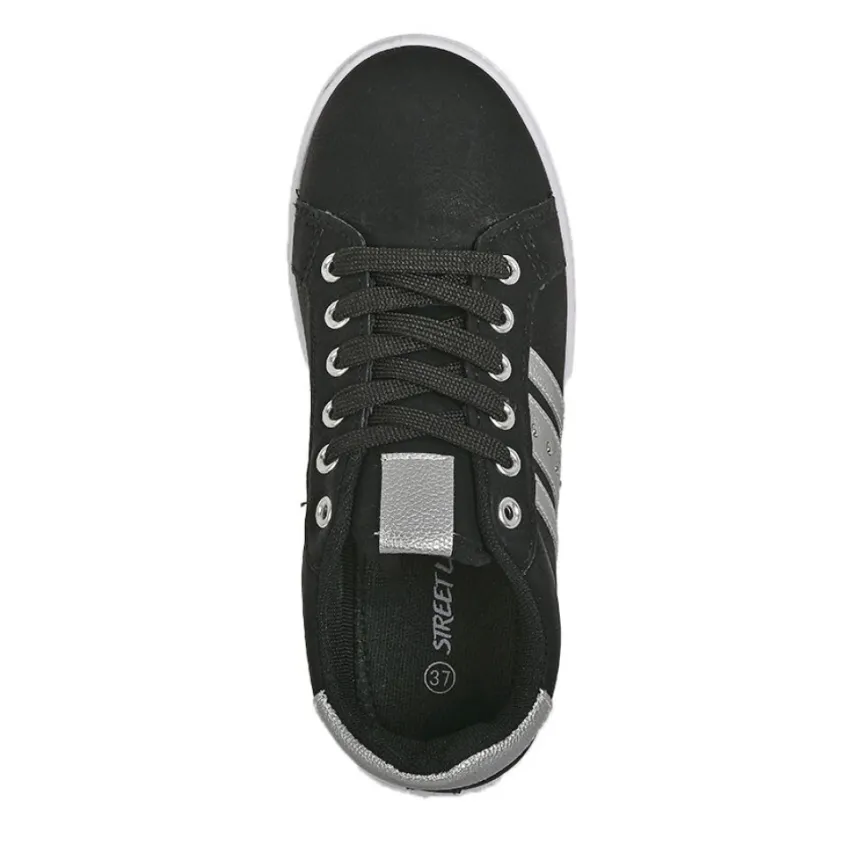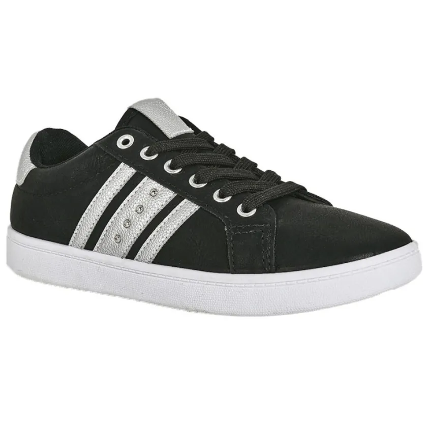Baskets, Sneakers|STREET LIFE Baskets Femme Noir Et Argente