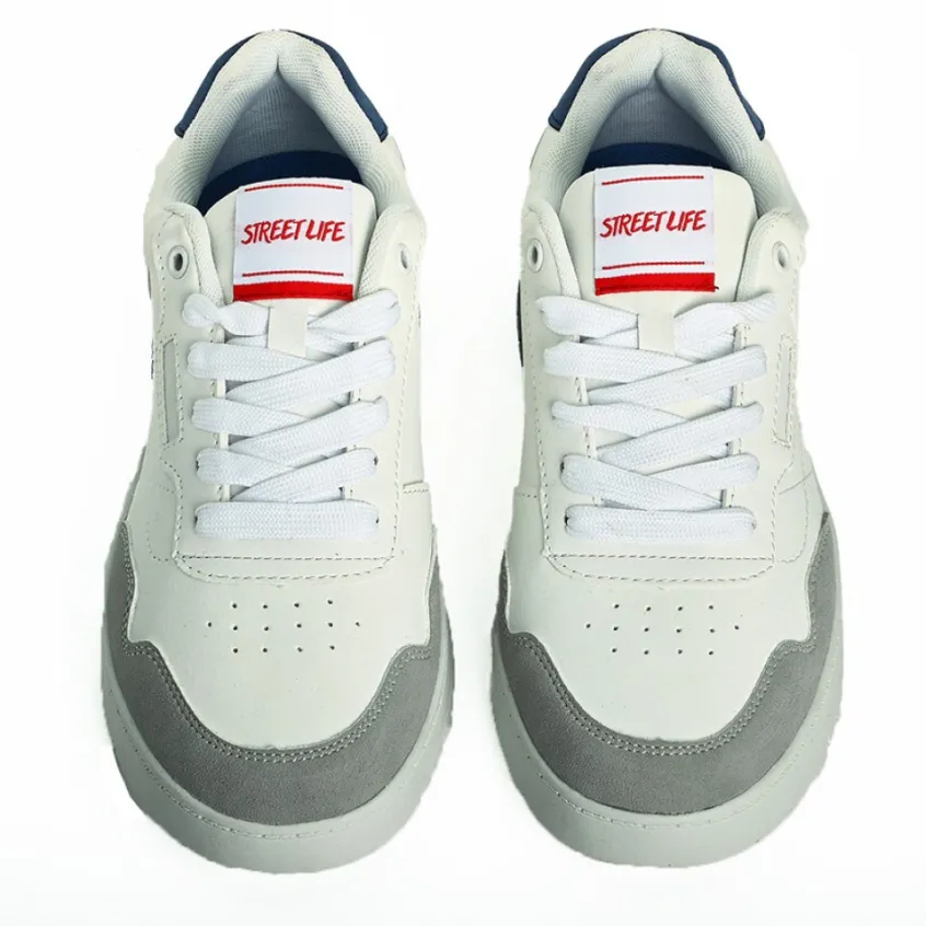 Baskets Homme Street Life Blanc: Baskets Homme, Marque Street Life, Coloris Blanc, Dessus En Synthétique, Doublure Textile, Semelle Intérieure Textile, Semelle Élastomère.