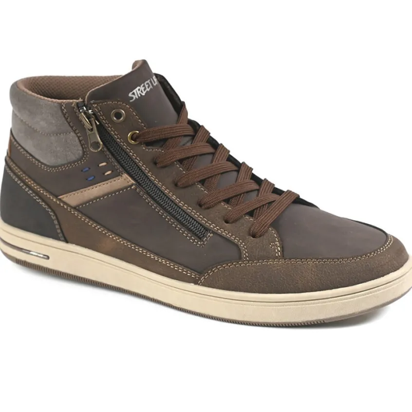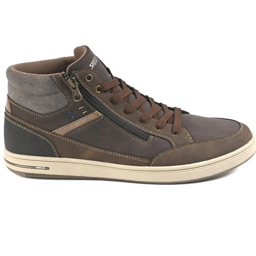 Baskets, Sneakers|STREET LIFE Baskets Montantes Homme Avec Zip Pratique Sur Le Cote Marron