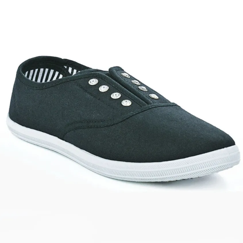 Baskets, Sneakers|STREET LIFE Baskets Tennis Femme En Toile Noire Avec Strass
