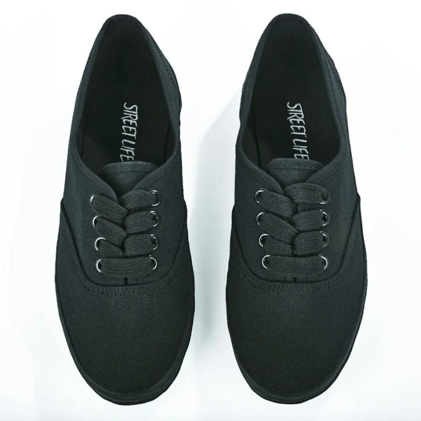 Tennis Femme Noir Unie Street Life: Un Essentiel De Votre Dressing Au Meilleur Prix ! A La Recherche D’Un Modèle De Chaussure En Toile Décontracté Et Facile À Porter Cet Été ? Craquez Pour Ces Tennis En Toile Unie Pour Femme : Lacets, Semelle Et Toile Se Confondent Dans Un Sobre Monochrome De Noir.Souple Et Légère, Cette Paire De Chaussures En Toile À Bout Rond Se Révélera Agréable À Porter Lors De Vos Balades En Ville. Elles Iront À Merveille Avec Une Robe Légère Ou Un Look Plus Casual Short / Haut Fleuri. Intemporelles Et Confortables, Ces Tennis Noires Vont Vite Devenir Vos Meilleures Alliées !Caractéristiques : Tennis Toile, Marque Street Life, Coloris Noir, Dessus En Textile, Doublure Textile, Semelle Intérieure Textile, Semelle Élastomère.