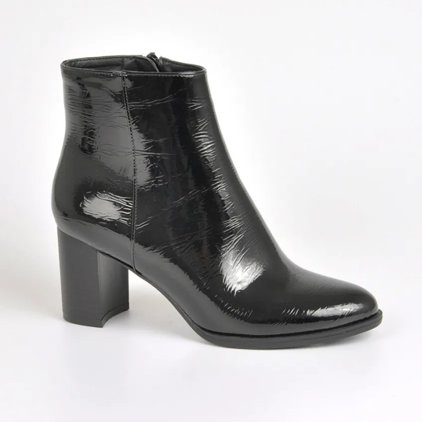 Bottines À Talons Mascara Vernis Noir: Bottines À Talons Femme, Marque Mascara, Coloris Vernis Noir, Dessus En Synthétique, Doublure Textile, Semelle Intérieure Synthétique, Fermeture Avec Zip, Semelle Élastomère, Talon 6.5 Cm.