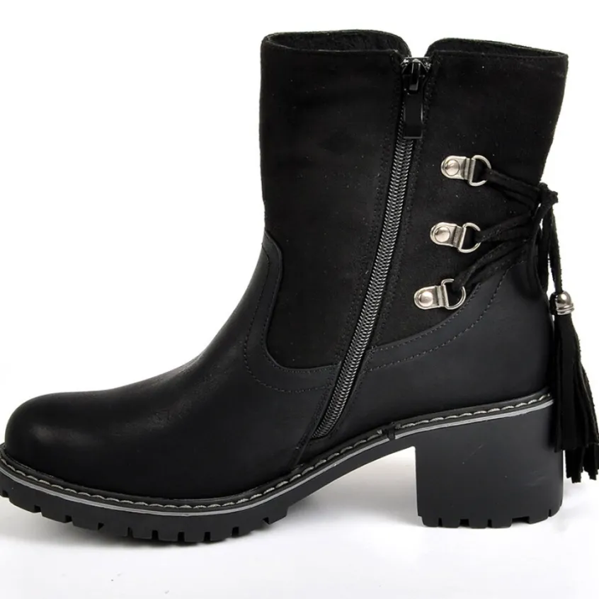 Bottines À Talons Femme Avec Pampilles Outshoes Noir: Bottines À Talons Femme Avec Pampilles, Marque Outshoes, Coloris Noir, Dessus En Synthétique, Doublure Fourrée, Semelle Intérieure Fourrée, Fermeture Avec Zip, Semelle Élastomère, Talon 5 Cm.