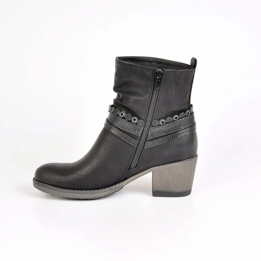 Bottines À Talons Femme Vice Versa Noir: Bottines À Talons Femme, Marque Vice Versa, Coloris Noir, Dessus En Synthétique, Doublure Fourrée, Semelle Intérieure Synthétique, Fermeture Avec Zip, Semelle Élastomère, Talon 5 Cm.