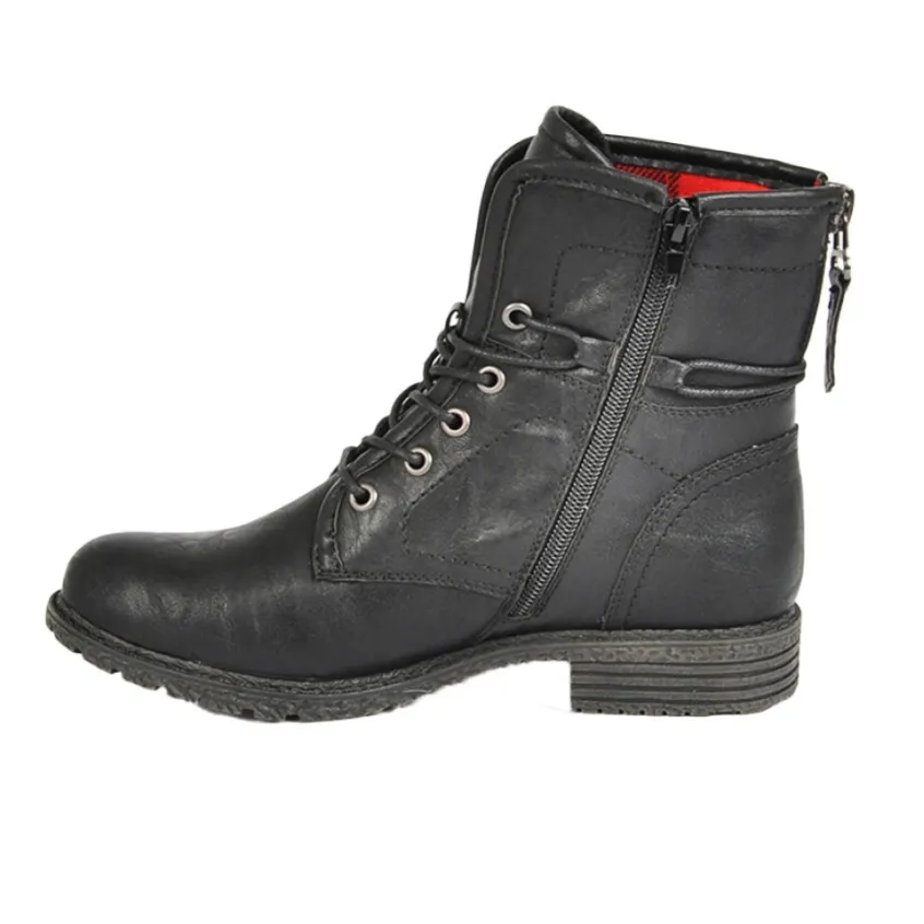 Bottines Plates À Lacets Femme Noir Vice Versa: Rock Et Élégante À La Fois, Cette Bottine Plate Noire Vice Versa Vous Séduira Par Son Confort Et Son Style Intemporel. La Fermeture À Glissière Permet D’Ouvrir Et De Fermer Ces Chaussures Facilement, Tandis Que Des Lacets Vous Permettront D’Ajuster Au Mieux Le Serrage. Idéales Pour Toutes Les Occasions, Cette Paire De Bottines À Lacets Femme Se Porte Aisément Dès Que Les Températures Se Rafraîchissent. À Noter : Une Fermeture À Zip Décorative Et Une Doublure À Carreaux Rouge Et Noire Style Bûcheron Qui Renforcent Son Allure Rock’N Roll ! Caractéristiques : Dessus En Synthétique, Doublure Textile, Semelle Intérieure Textile, Semelle Élastomère, Fermeture À Zip.