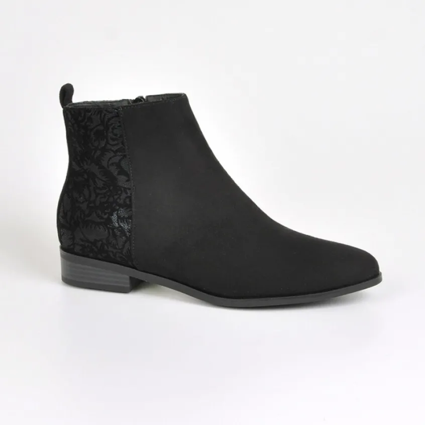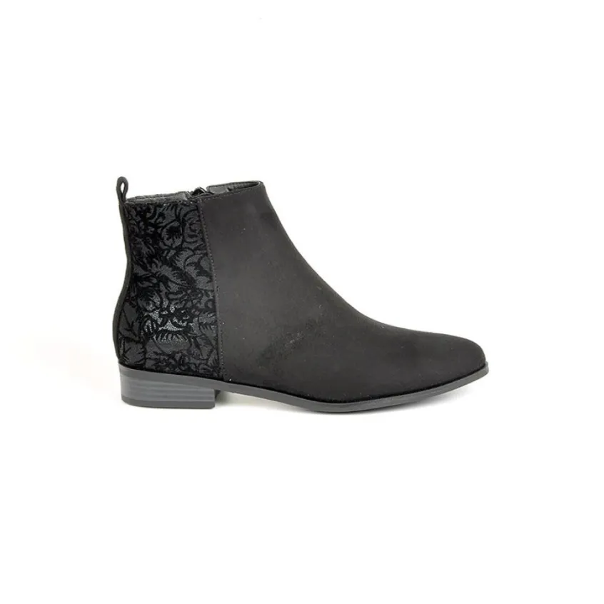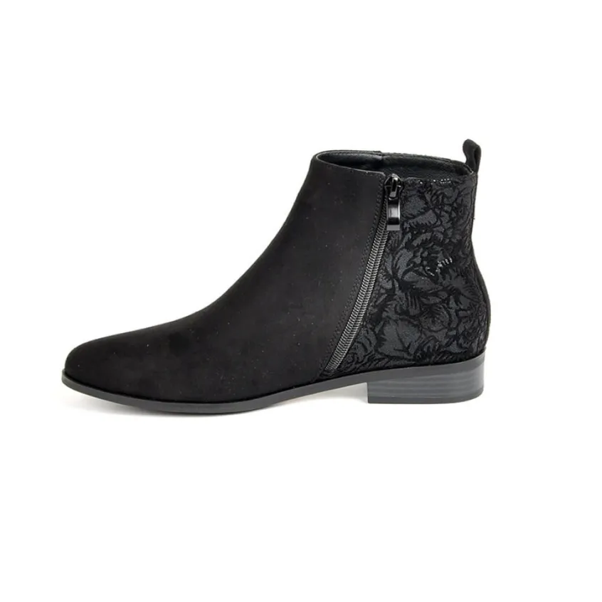 Chaussures Confort|LADY CONFORT Bottines A Talons Motifs Fleurs Noir