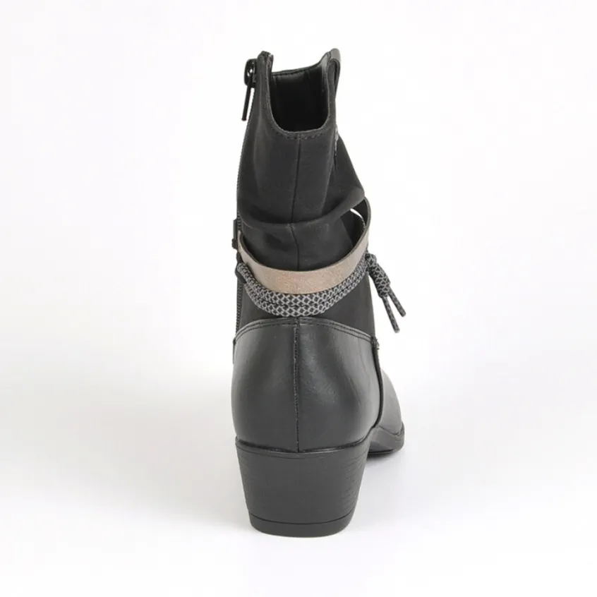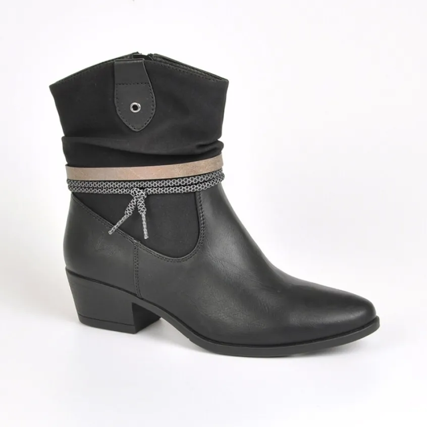 Bottines Plates Bi-Matières Vice Versa Noir: Bottines Plates Bi-Matières Femme, Marque Vice Versa, Coloris Noir, Dessus En Synthétique, Doublure Synthétique Et Textile, Semelle Intérieure Synthétique, Fermeture Avec Zip, Semelle Élastomère, Talon 3.5 Cm.