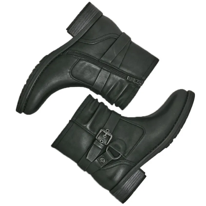 Bottines Plates Femme Noir Avec Boucles Vice Versa: Bottines Plates Avec Boucles Métalliques Femme, Marque Vice Versa, Coloris Noir, Dessus En Synthétique, Doublure Textile, Semelle Intérieure Textile, Fermeture Avec Zip, Semelle Élastomère, Talon 3 Cm.