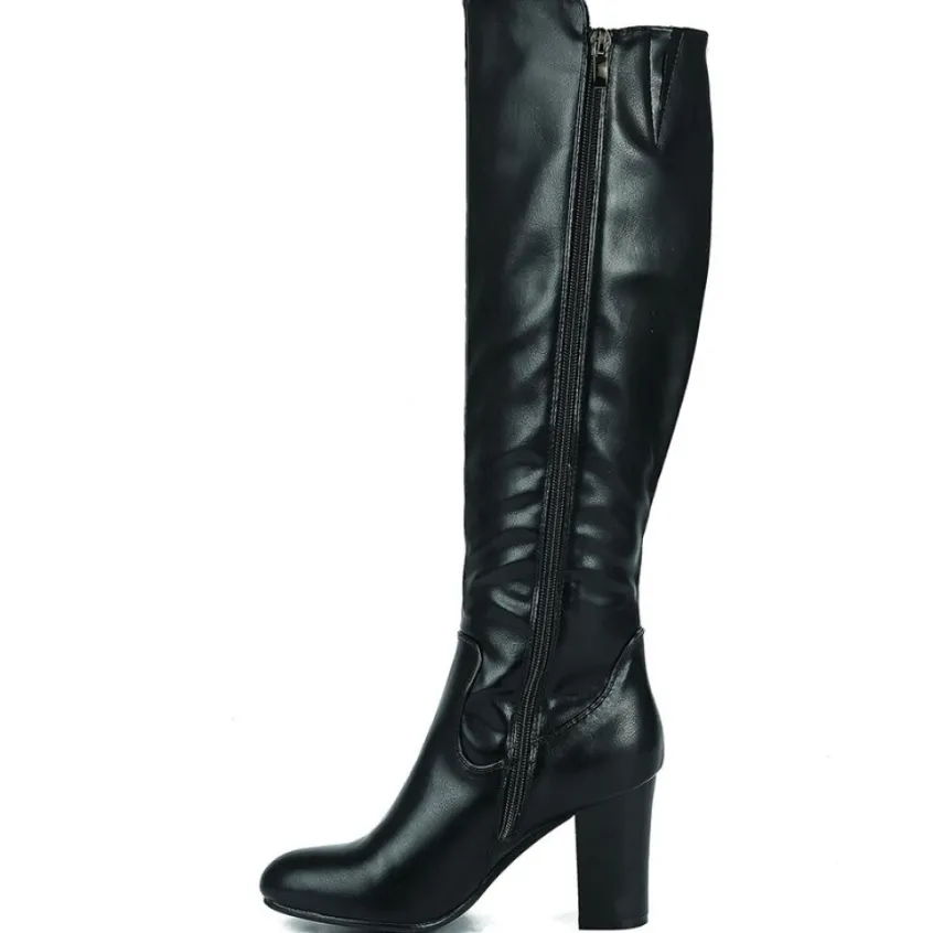 Bottes À Talons Femme Mascara Noir: Bottes À Talons Femme, Marque Mascara, Coloris Noir, Dessus En Synthétique, Doublure Textile, Semelle Intérieure Synthétique, Fermeture Avec Zip, Semelle Élastomère, Talon 7 Cm, Hauteur De Tige 37 Cm, Tour De Mollet 37 Cm.
