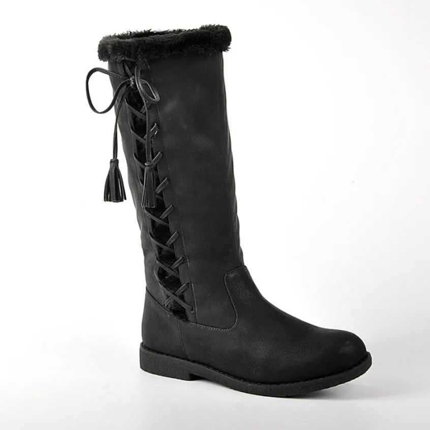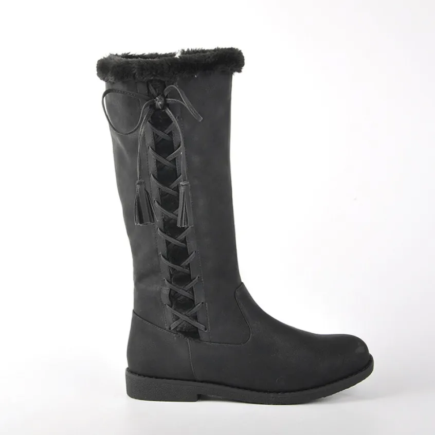 Bottes, Cuissardes|VICE VERSA Bottes Plates Avec Col Fausse Fourrure Noir