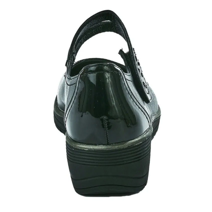 Ballerines À Brides Femme Noir Avec Clous Lady Confort: Des Ballerines Intemporelles Faciles À Assortir Et Agréables À Porter ! Chaussexpo Vous Présente Ce Modèle De Ballerines Au Grand Confort, Adapté Aux Pieds Sensibles Et Larges. Très Élégantes, Ces Ballerines À Brides Noires Ornées De Clous Argentés Vont Vite Devenir Vos Chaussures Préférées.Leur Design Étudié Est Embelli D’Un Empiècement Verni À L’Arrière Très Chic Et D’Un Liseré Argenté Qui Souligne Sa Semelle. Son Petit + : Aussi Confortables Que Des Chaussons, Elles Sont Équipées D’Une Semelle Intérieure En Cuir Moelleuse Qui Laisse Le Pied Respirer. Quant À Leur Bride, Elle Camoufle Une Fermeture À Scratch Qui Facilite L’Enfilage De Cette Chaussure Confort. Pour Ne Rien Gâcher, Son Talon Compensé De 3,5 Cm Possède La Courbure Idéale Pour Un Bon Confort De Marche Au Quotidien.