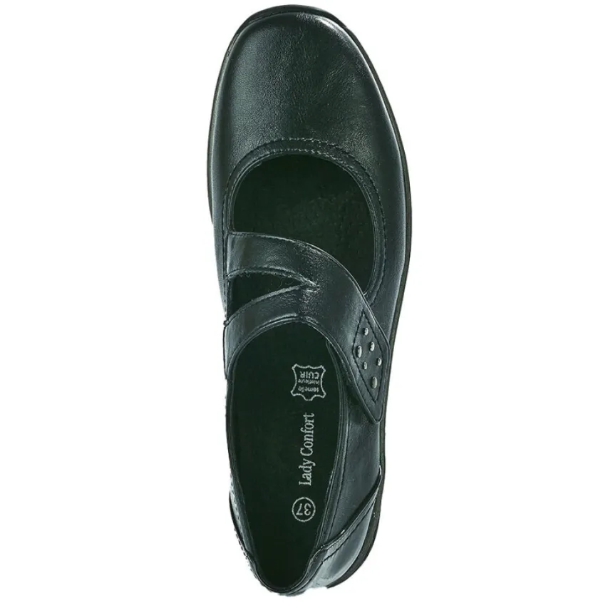 Chaussures Confort|LADY CONFORT Ballerines A Brides Femme Noir Avec Clous
