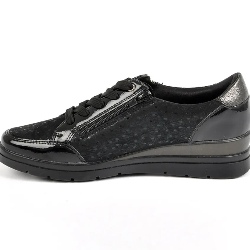 Baskets Femme Avec Strass Lady Confort Noir: Grand Confort, Forme Largebaskets Femme Avec Strass Confort, Marque Lady Confort, Coloris Noir, Dessus En Synthétique Et Textile, Doublure Textile, Semelle Intérieure Cuir, Fermeture Avec Zip, Semelle Élastomère, Talon Compensé 4 Cm.