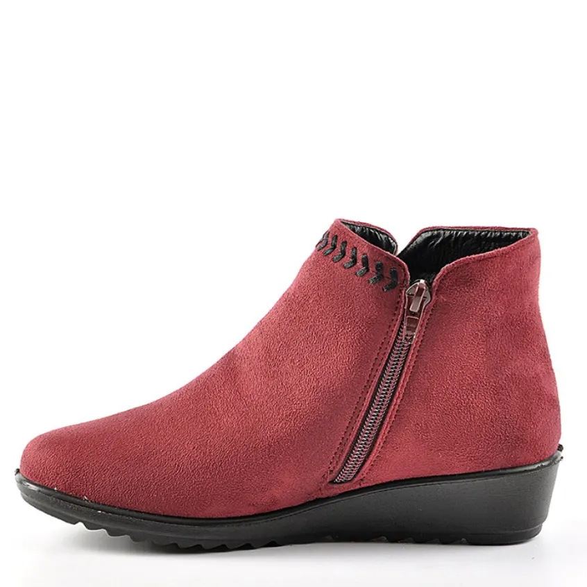 Bottines Compensées Aspect Velours Lady Confort Bordeaux: Grand Confort, Forme Large Bottines Compensées Aspect Velours Femme Confort, Marque Lady Confort, Coloris Bordeaux, Dessus En Synthétique, Doublure Textile, Semelle Intérieure Synthétique, Fermeture Avec Zip, Semelle Élastomère, Talon 3 Cm.