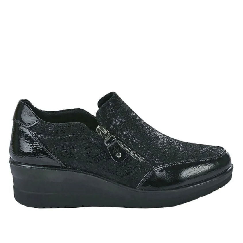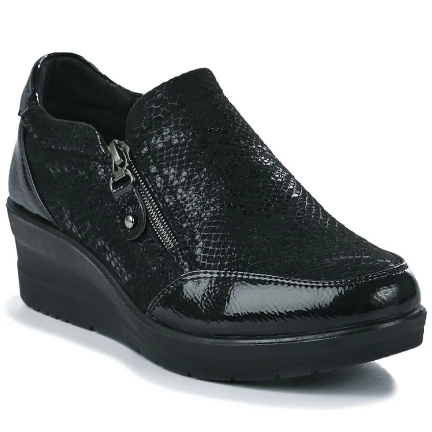 Chaussures Confort Avec Élastiques Lady Confort Noir: Grand Confort, Forme Large Chaussures Confort Avec Élastiques Femme Confort, Marque Lady Confort, Coloris Noir, Dessus En Synthétique Et Textile, Doublure Textile, Semelle Intérieure Cuir, Fermeture Avec Zip, Semelle Élastomère, Talon 4.5 Cm.