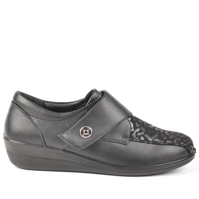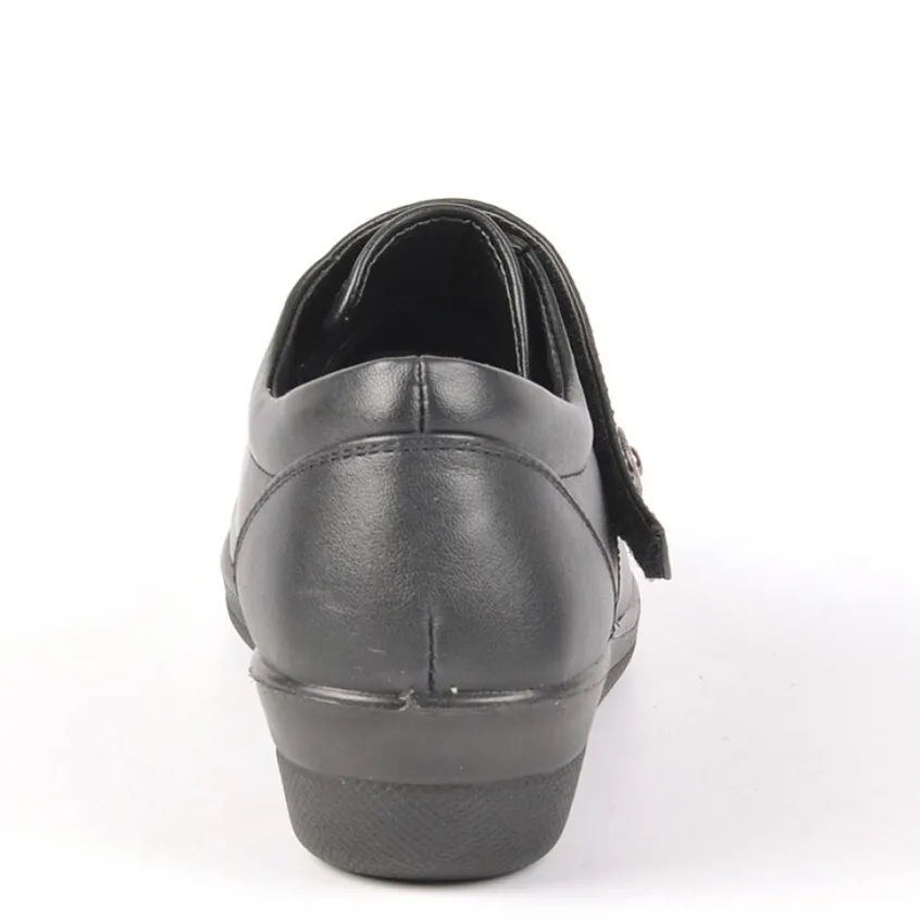 Derbies Confort Bi-Matières Noir: Grand Confort, Forme Large Chaussures Confort Bi-Matières Femme Confort, Marque Lady Confort, Coloris Noir, Dessus En Synthétique, Doublure Synthétique, Semelle Intérieure Cuir, Fermeture À Scratch, Semelle Élastomère, Talon 3.5 Cm.
