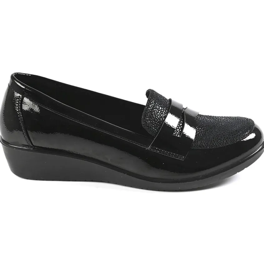 Chaussures Confort|LADY CONFORT Mocassins Compenses Femme Noir Vernis