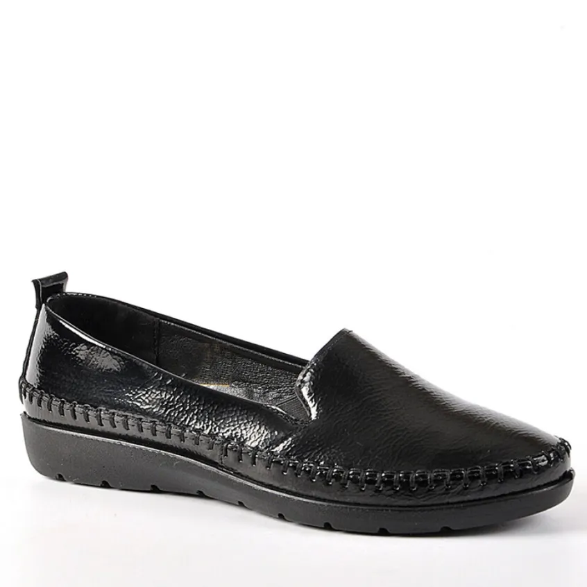 Chaussures Confort|LADY CONFORT Mocassins Noir Vernis Pour Femme