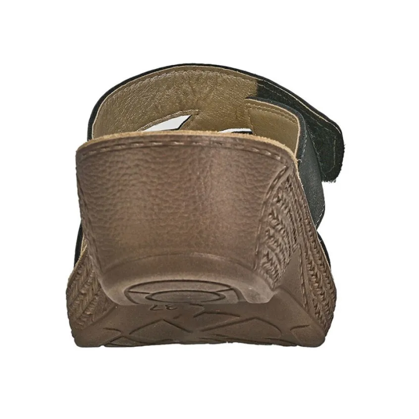 Chaussures Confort|LADY CONFORT Sandales Compensees Noir En Cuir