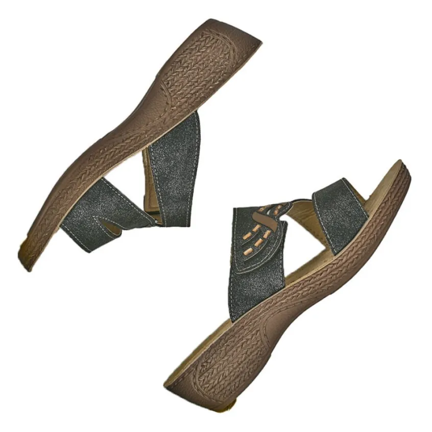 Chaussures Confort|LADY CONFORT Sandales Compensees Femme Gris En Cuir