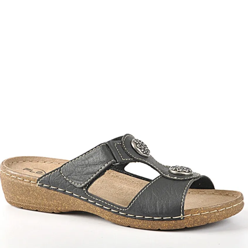 Mules Compensées Avec Boutons Fantaisies Flex’Is Noir: Grand Confort, Forme Largemules Femme Compensées Avec Boutons Fantaisies Confort, Marque Flex’Is, Coloris Noir, Dessus En Synthétique, Doublure Textile, Semelle Intérieure Cuir, Fermeture À Scratch, Semelle Élastomère, Talon 3 Cm.
