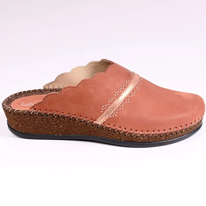 Mules Compensées Femme Lady Confort Brique: Grand Confort, Forme Largemules Compensées Femme Confort, Marque Lady Confort, Coloris Brique, Dessus En Cuir, Doublure Cuir, Semelle Intérieure Cuir, Semelle Élastomère, Talon 4 Cm.