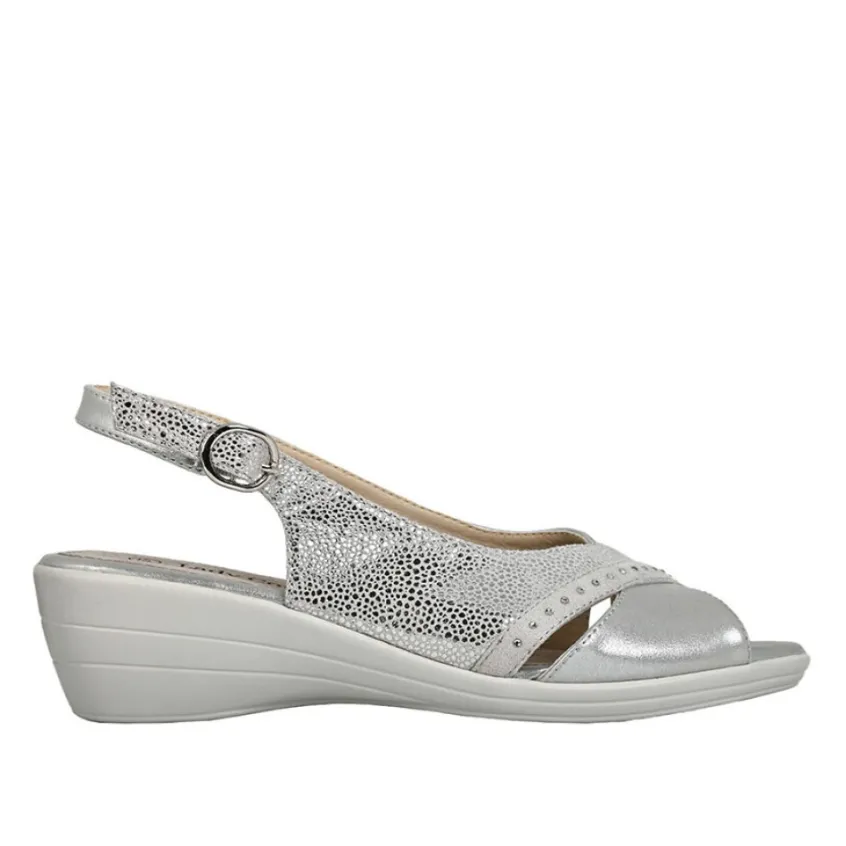 Sandales Compensées Femme Lady Confort Argenté: Grand Confort, Forme Largesandales Compensées Femme Confort, Bi-Matières, Marque Lady Confort, Coloris Argente, Dessus En Synthétique, Doublure Synthétique, Semelle Intérieure Cuir, Semelle Élastomère, Talon 4.5 Cm.