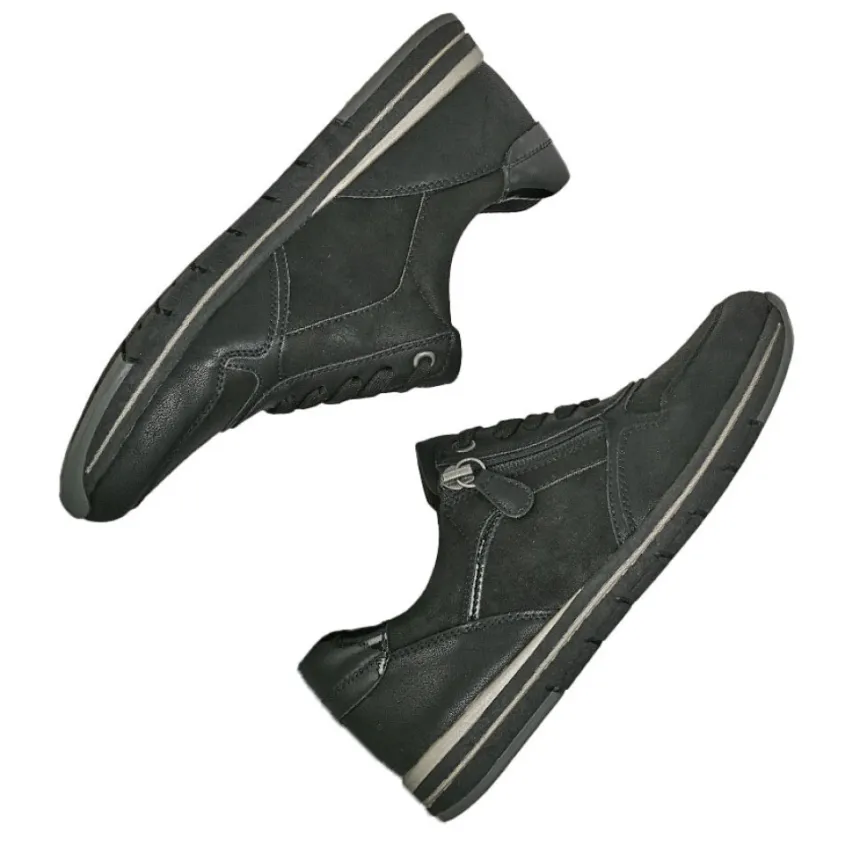 Chaussures Confort|RELIFE Baskets Confort Femme Noir Avec Fermeture Eclair