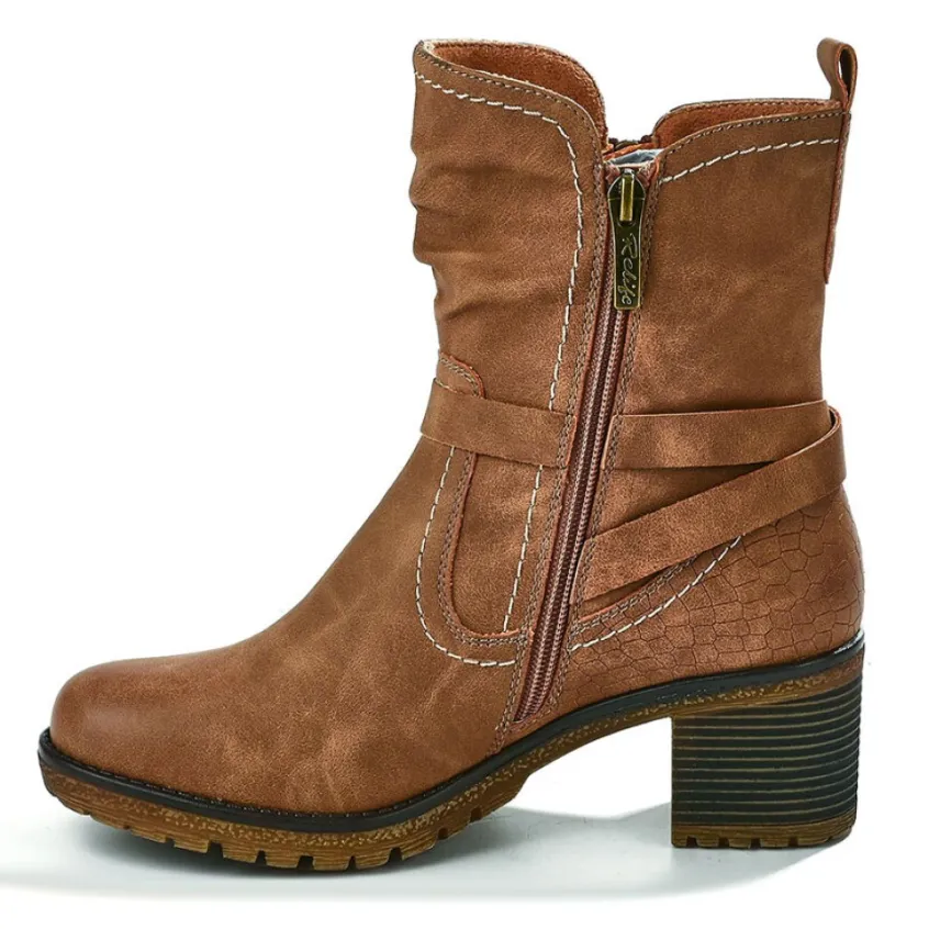 Bottines À Talons Femme Relife Marron: Grand Confort, Forme Largebottines À Talons Avec Zip Décoratif Femme Confort, Marque Relife, Coloris Marron, Dessus En Synthétique, Doublure Textile, Semelle Intérieure Textile, Fermeture Avec Zip, Semelle Élastomère, Talon 5 Cm.