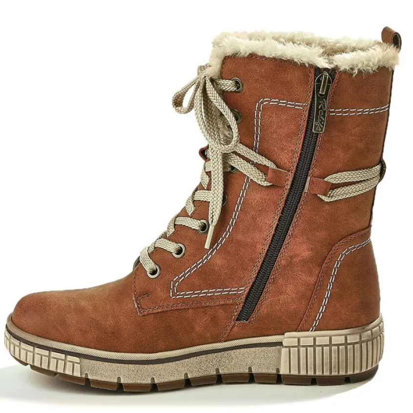 Bottines Compensées Femme Relife Camel: Grand Confort, Forme Largebottines Compensées Femme Confort Avec Col Fausse Fourrure, Marque Relife, Coloris Camel, Dessus En Synthétique, Doublure Fourrée, Semelle Intérieure Textile, Fermeture Avec Zip, Semelle Élastomère, Talon 3.5 Cm.