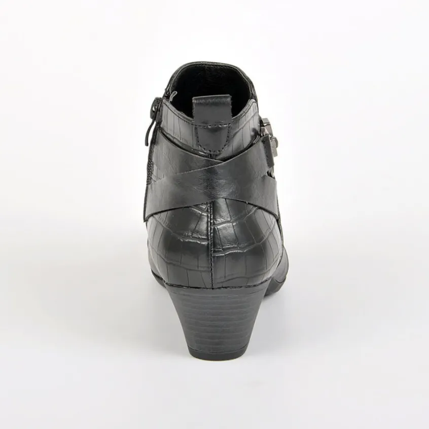 Bottines À Talons Avec Boucles Métalliques Scalina Noir: Grand Confort, Forme Large Bottines À Talons Avec Boucles Métalliques Femme Confort, Marque Scalina, Coloris Noir, Dessus En Synthétique, Doublure Textile, Semelle Intérieure Cuir, Fermeture Avec Zip, Semelle Élastomère, Talon 4.5 Cm.