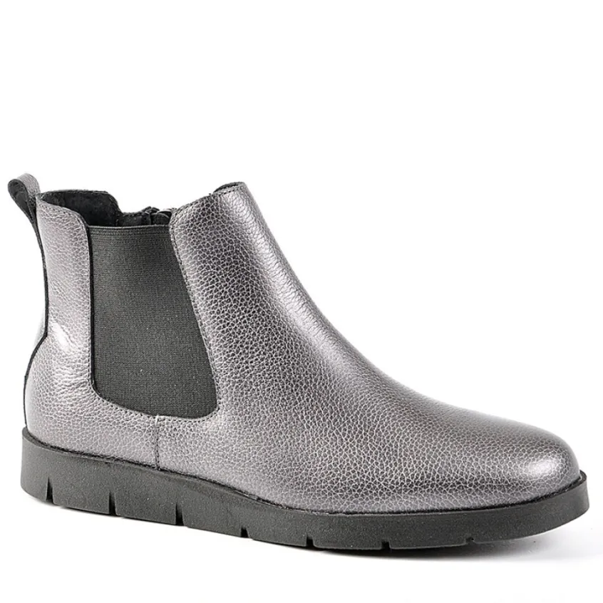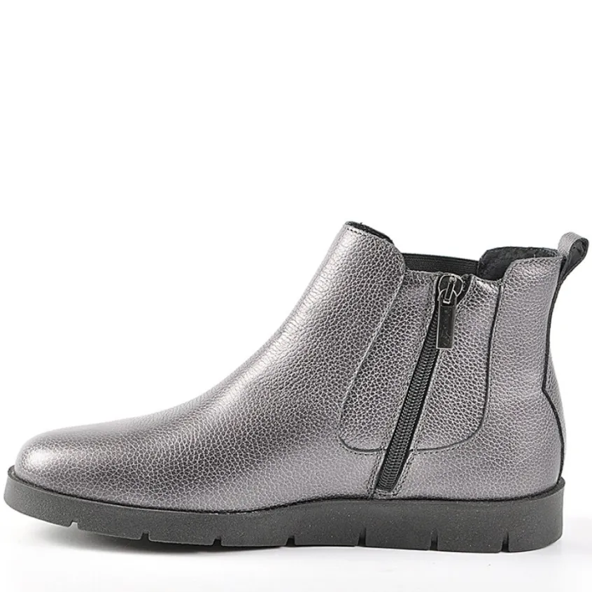 Bottines Plates Avec Élastiques Scalina Argente: Grand Confort, Forme Large Bottines Plates Avec Élastiques Femme Confort, Marque Scalina, Coloris Argente, Dessus En Cuir, Doublure Textile, Semelle Intérieure Cuir, Fermeture Avec Zip, Semelle Élastomère.