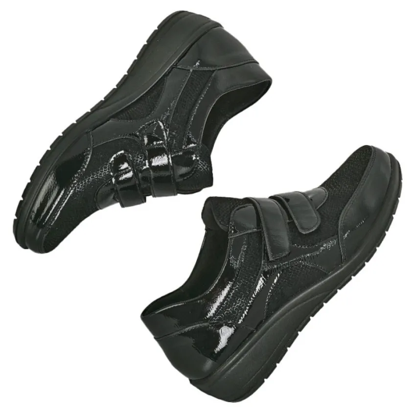 Chaussures Confort Femme Noir À Scratch Scalina: Grand Confort, Forme Large Chaussures Confort Bi-Matières Femme Confort, Marque Scalina, Coloris Noir, Dessus En Synthétique, Doublure Textile, Semelle Intérieure Cuir, Fermeture À Scratch, Semelle Élastomère, Talon 3 Cm.