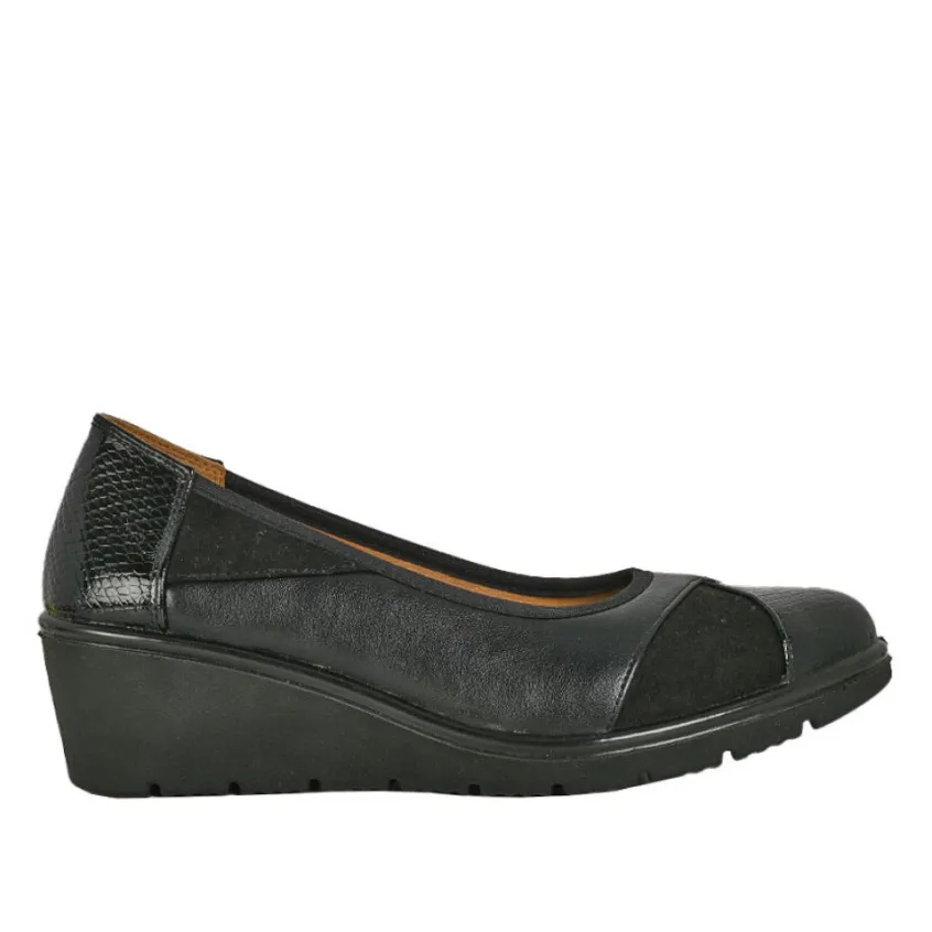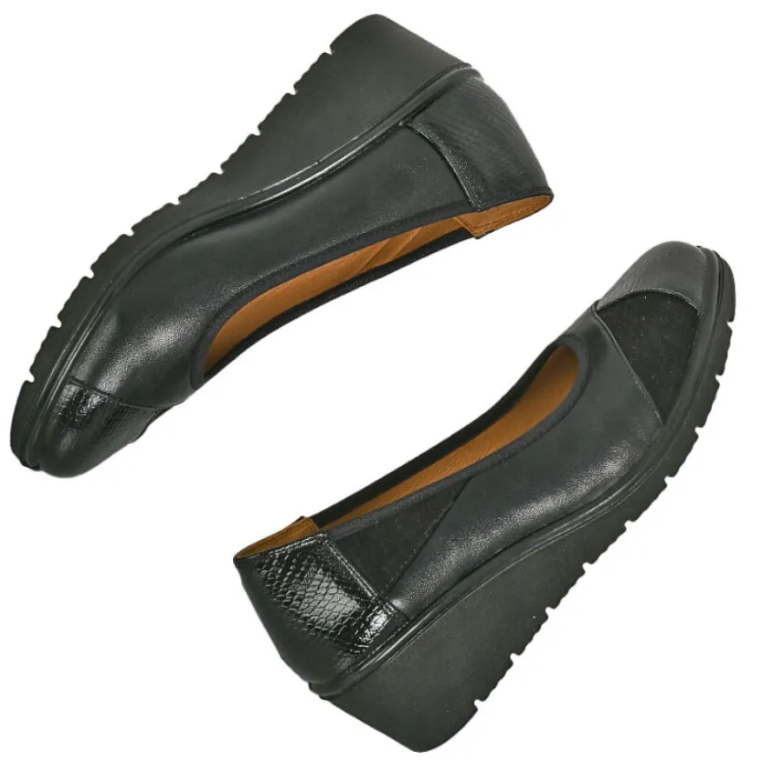 Escarpins Compensés Bi-Matières Noir Scalina: Grand Confort, Forme Large Escarpins Compensés Bi-Matières Femme Confort, Marque Scalina, Coloris Noir, Dessus En Synthétique, Doublure Synthétique, Semelle Intérieure Cuir, Semelle Élastomère, Talon 4.5 Cm.