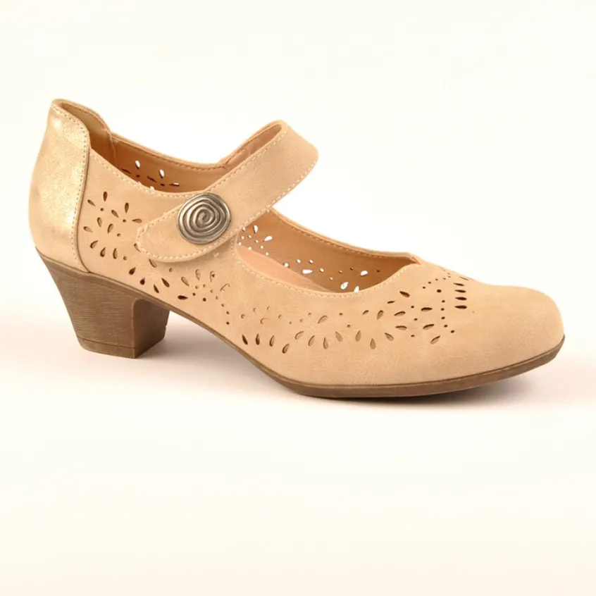 Escarpins Confort Femme Beige À Brides Scalina: Pour Un Look Resplendissant Cet Été, Optez Pour Ces Escarpins Beiges Au Petit Talon De 4 Cm. Leur Élégance Intemporelle Est Sublimée Par Une Touche Originale Grâce À Un Bouton Fantaisie, Un Empiècement Argenté Et De Délicates Perforations Ornementales Sur La Tige. Le Bonus : Ces Chaussures Confortables Et Chics Permettent À Vos Pieds De Respirer En Été.On Aime Leur Coupe ‘Babies’ D’Une Féminité Indéniable Avec Leur Bout Rond Et Une Bride Élégante. Ces Escarpins Possèdent En Prime Une Semelle Souple Et Une Semelle Intérieure En Cuir. De Plus, Avec Leur Fermeture À Scratch Qui Permet De Les Ouvrir Entièrement, Ces Chaussures Scalina Sont Particulièrement Adaptées Aux Pieds Larges.Caractéristiques : Dessus Et Doublure En Synthétique, Semelle Intérieure Cuir, Semelle Élastomère.