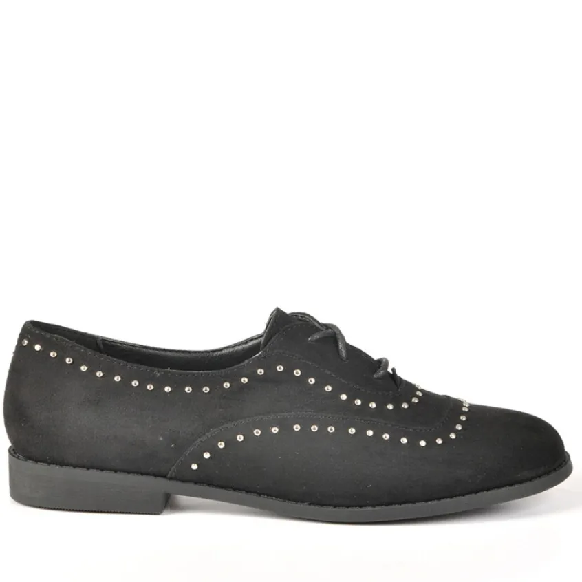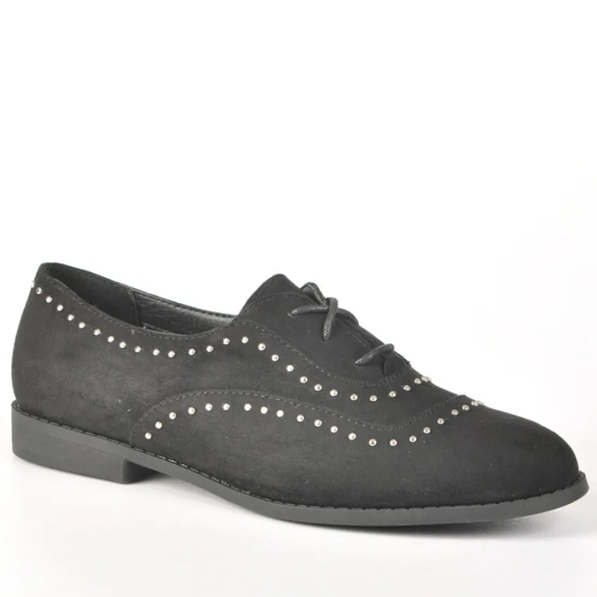 Derbies Femme Avec Petits Clous Noir: Derbies Femme Avec Petits Clous, Marque Ana Luna, Coloris Noir, Dessus En Synthétique, Doublure Synthétique, Semelle Intérieure Cuir, Semelle Élastomère.