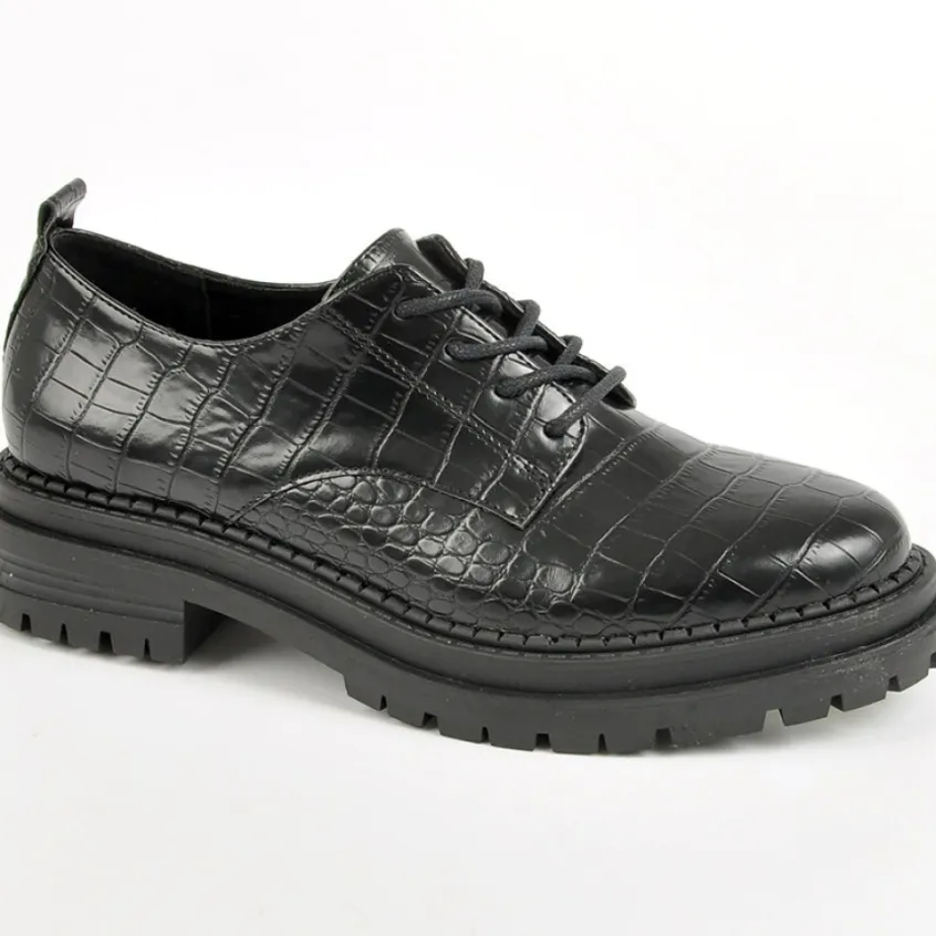 Derbies Avec Effet Croco Vice Versa Noir: Derbies Avec Effet Croco Femme, Marque Vice Versa, Coloris Noir, Dessus En Synthétique, Doublure Synthétique, Semelle Intérieure Cuir, Semelle Élastomère.