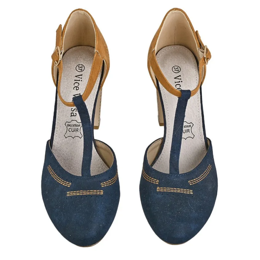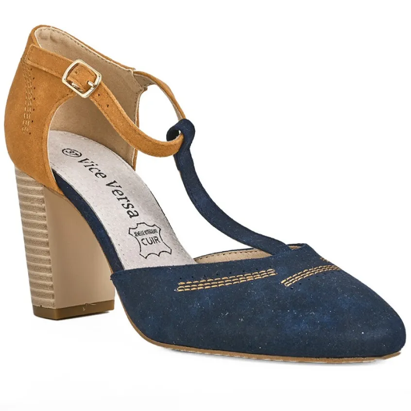Escarpins À Brides Femme Bicolore Bleu Marine Vice Versa: Pour Apporter Une Touche De Couleur À Votre Tenue Tout En Restant Élégante, Ces Escarpins Salomés Bleu Marine Et Camel Sont Un Choix Idéal. Notre Coup De Cœur : De Délicates Surpiqûres Camel Et De Petites Perforations Ornent La Tige De Ces Chaussures À Talon Vice Versa. Confectionnés Dans Un Tissu Suédine Doux Et Chaleureux, Ces Escarpins Bicolores Vous Garantissent Une Allure Éblouissante. Bout En Amande, Talon De 8 Cm Et Fine Bride À La Cheville : Le Combo Parfait Pour Être Féminine En Toutes Circonstances. Dernier Atout Non-Négligeable De Cet Escarpin Pour Femme : Sa Semelle Intérieure En Cuir Confortable Et Respirante.Caractéristiques : Dessus En Synthétique, Doublure Synthétique, Semelle Intérieure Cuir, Semelle Élastomère, Talon 8 Cm.