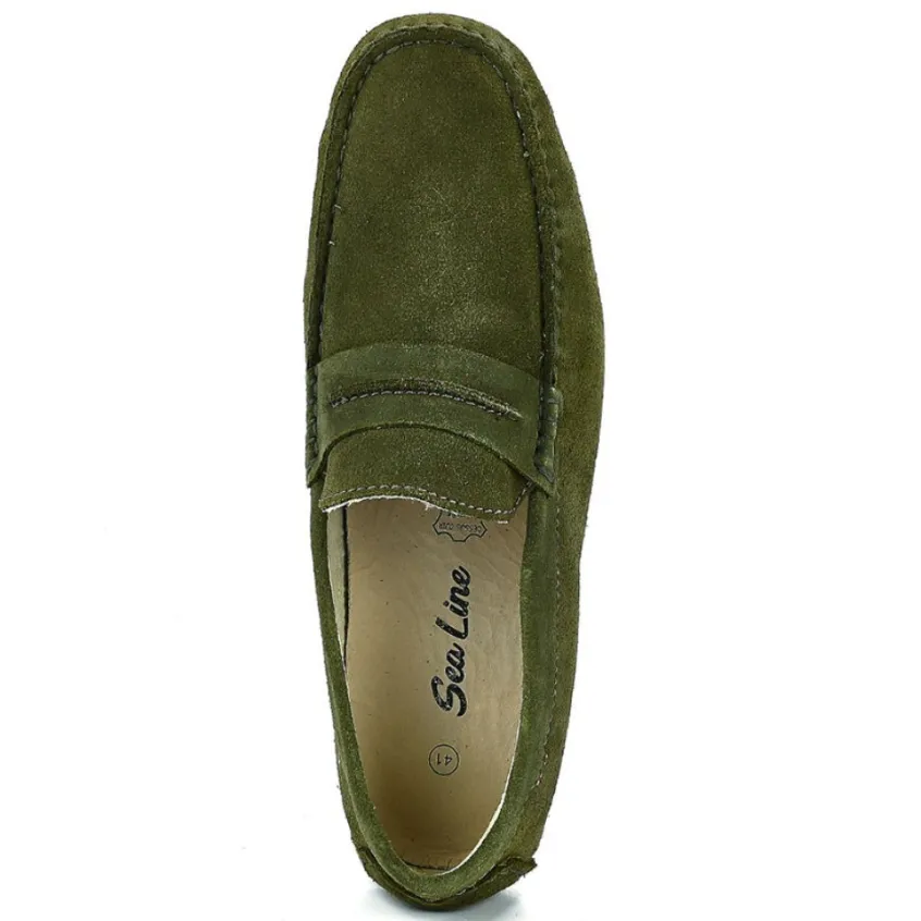 Mocassins Homme Sealine Kaki: Mocassins Semelles Souples Homme, Marque Sealine, Coloris Kaki, Dessus En Cuir Velours, Doublure Textile, Semelle Intérieure Cuir, Semelle Élastomère.